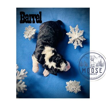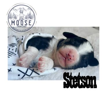 Our love for the breed started with Moose. We wanted a big dog that was that was intelligent, on the calmer side, and with less shedding. We went to pick out a puppy and Moose chose us! He went right up to our son's wheelchair and climbed up his legs. It was like Moose knew exactly what his job was from day one. We worked on training Moose to become Lincoln's service dog and he is a huge part of our family. We were called to breed Bernedoodles, to raise little Moose Tracks. With Brian's experience breeding Keeshonds growing up and Tricia experience as a teacher we set out to raise Bernedoodles, not just breed them. We use the Puppy Culture curriculum to give each puppy the best start at becoming a wonderful pet or possibly even a service dog. It is definitely a family affair, we are a family of 6 and everyone helps out.
