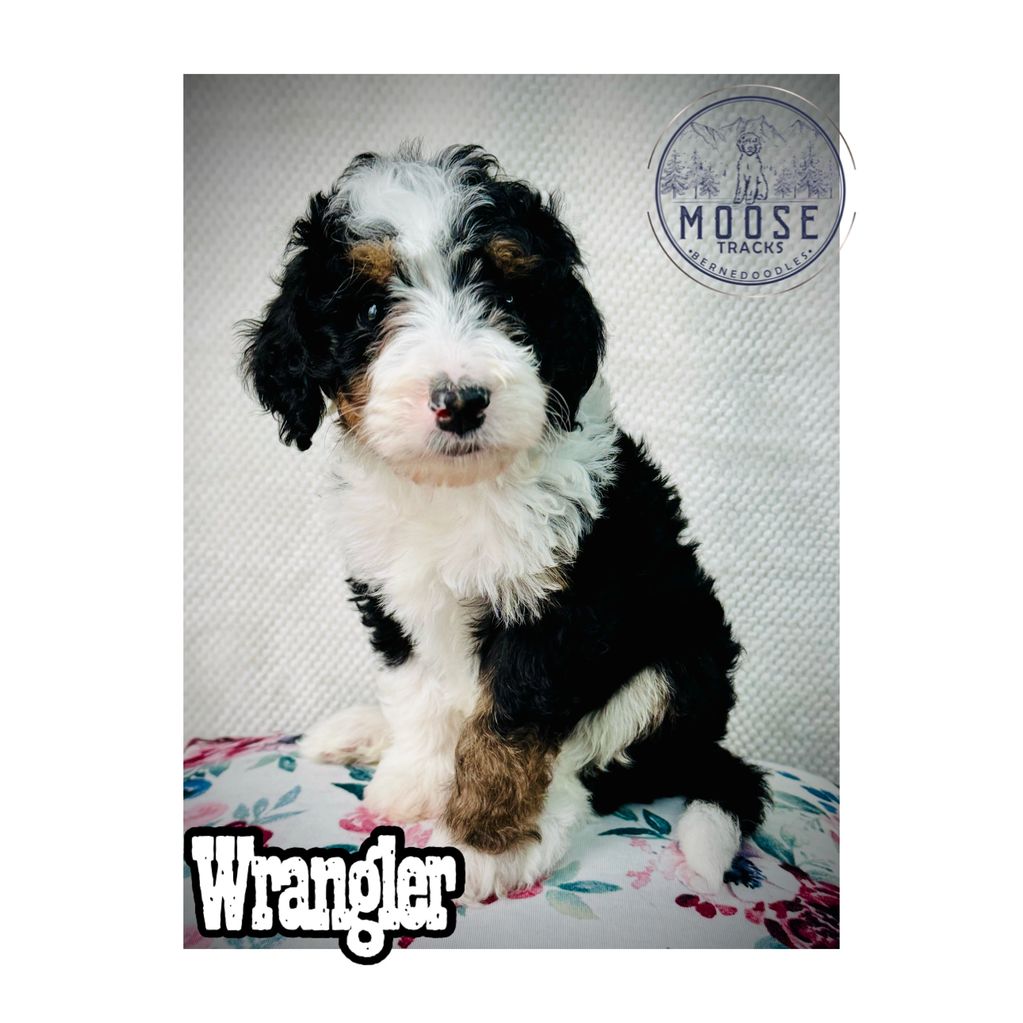 Our love for the breed started with Moose. We wanted a big dog that was that was intelligent, on the calmer side, and with less shedding. We went to pick out a puppy and Moose chose us! He went right up to our son's wheelchair and climbed up his legs. It was like Moose knew exactly what his job was from day one. We worked on training Moose to become Lincoln's service dog and he is a huge part of our family. We were called to breed Bernedoodles, to raise little Moose Tracks. With Brian's experience breeding Keeshonds growing up and Tricia experience as a teacher we set out to raise Bernedoodles, not just breed them. We use the Puppy Culture curriculum to give each puppy the best start at becoming a wonderful pet or possibly even a service dog. It is definitely a family affair, we are a family of 6 and everyone helps out.